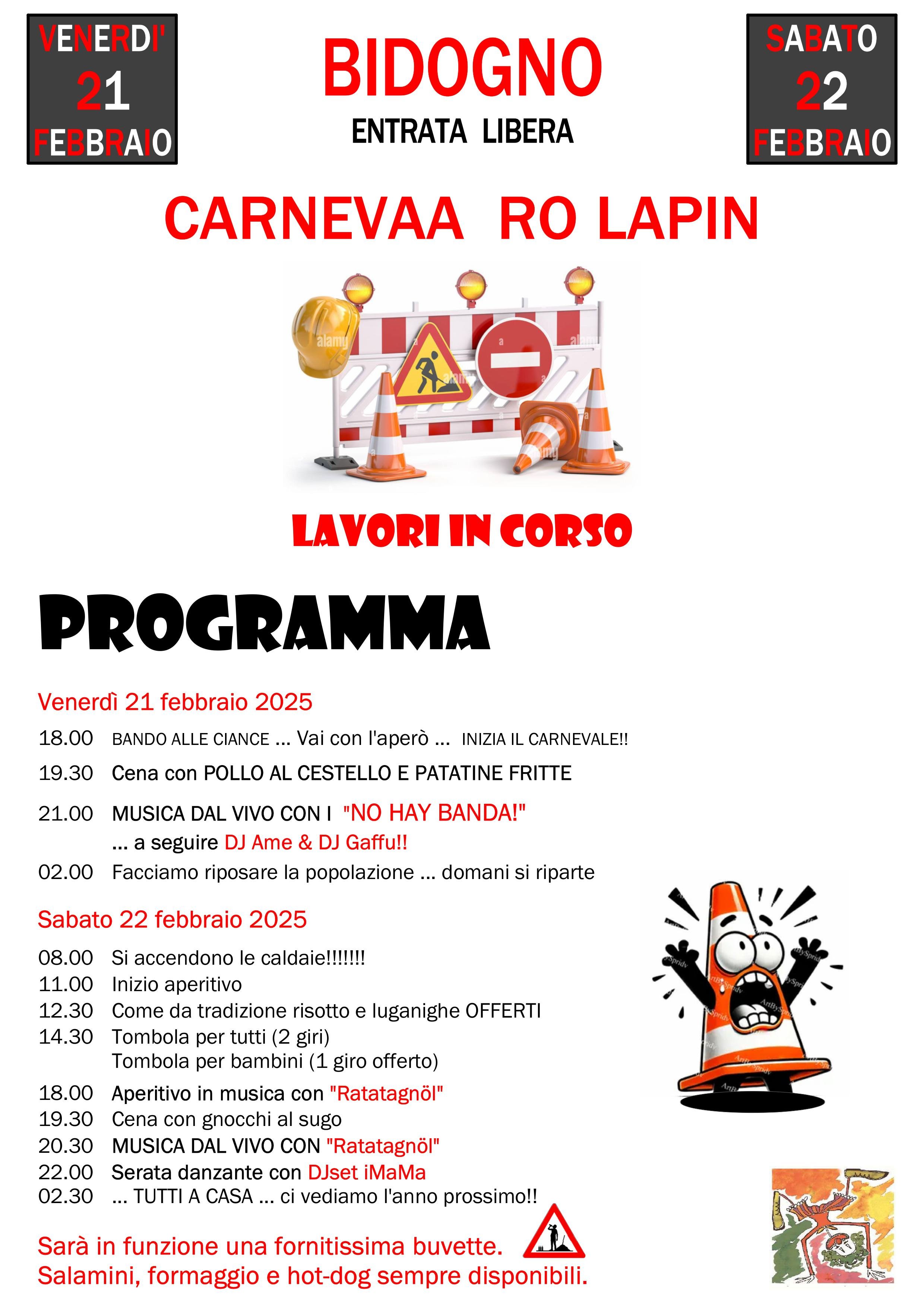 Venerdì 21 e sabato 22 febbraio, Bidogno