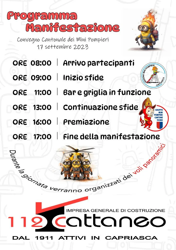 Domenica 17 settembre si terrà il Convegno Cantonale dei mini pompieri presso il Centro Sportivo di Tesserete.
