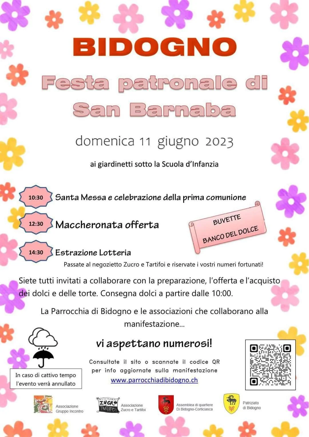 La Parrocchia e le associazioni che collaborano alla manifestazione vi aspettano numerosi ai giardinetti sotto la Scuola dell’Infanzia di Bidogno.