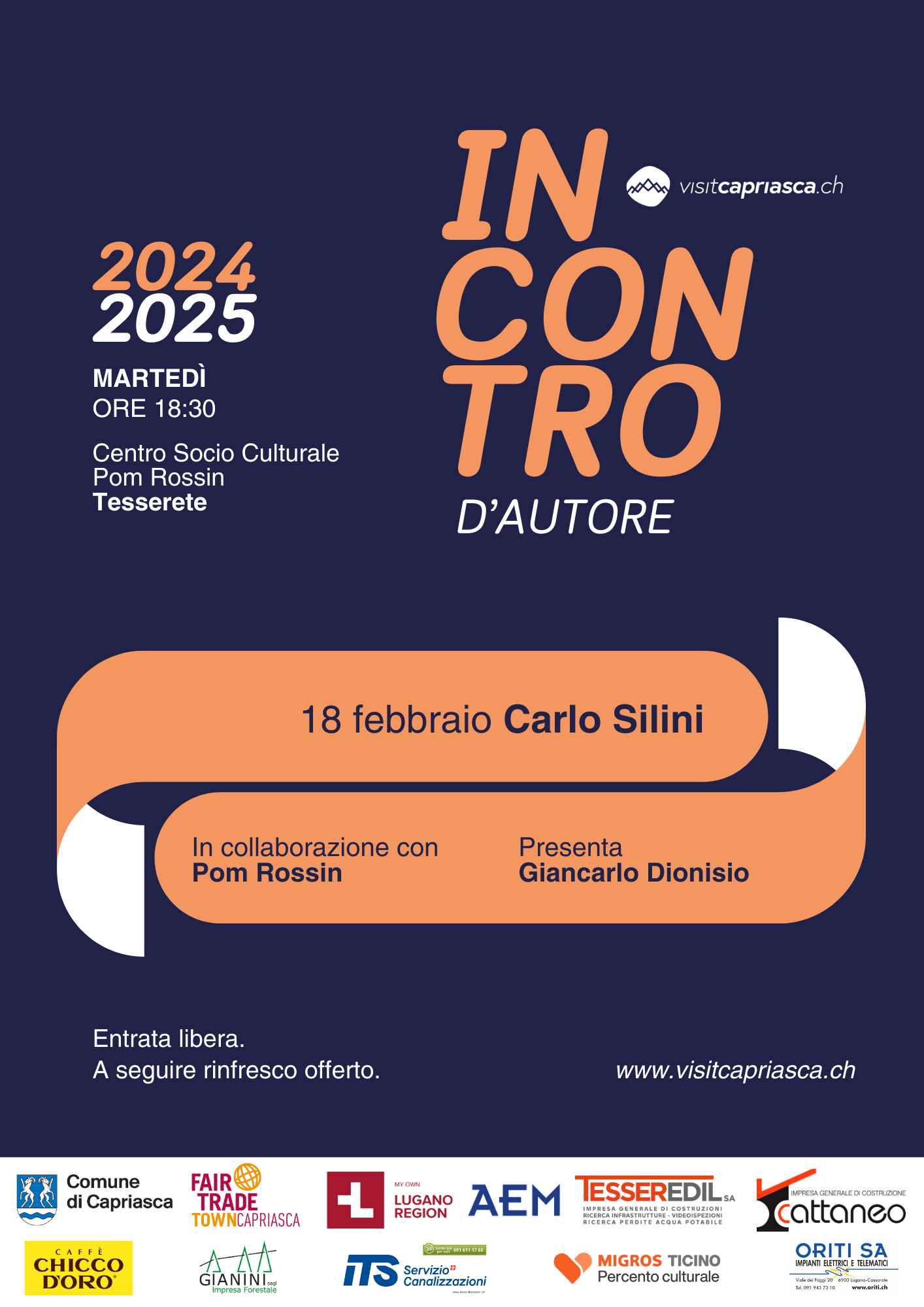 Carlo Silini, martedì 18 febbraio ore 18:30, Pom Rossin Tesserete
