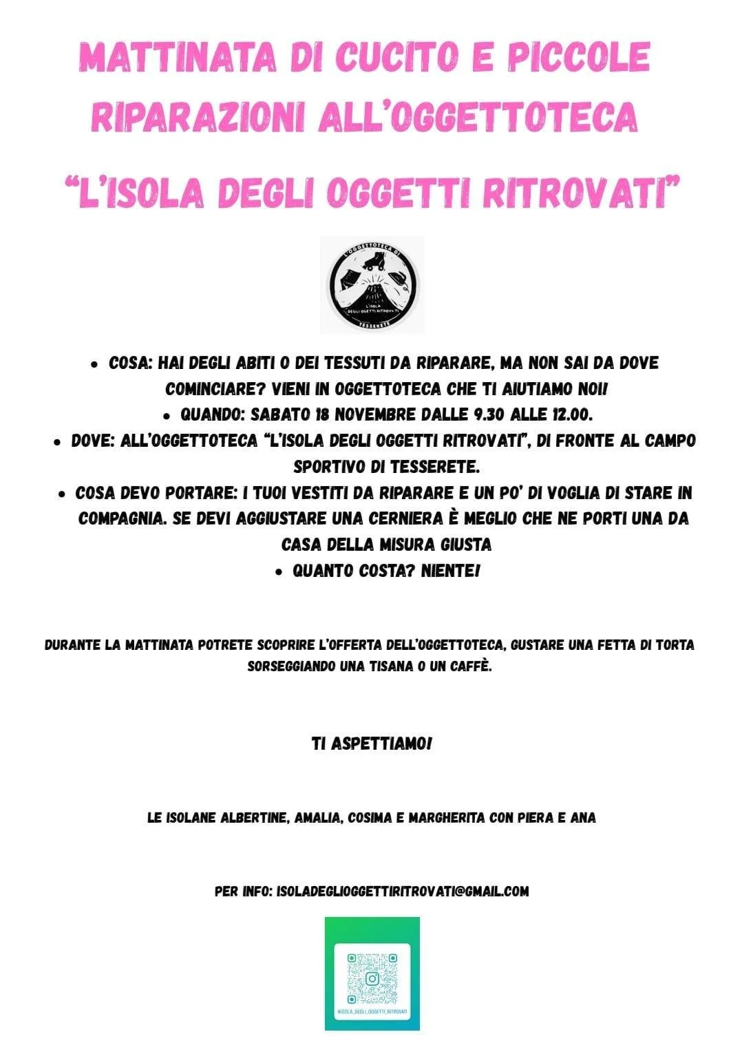 Sabato 18 novembre ore 9:30 - 12:00, Oggettoteca (zona campo giascion)