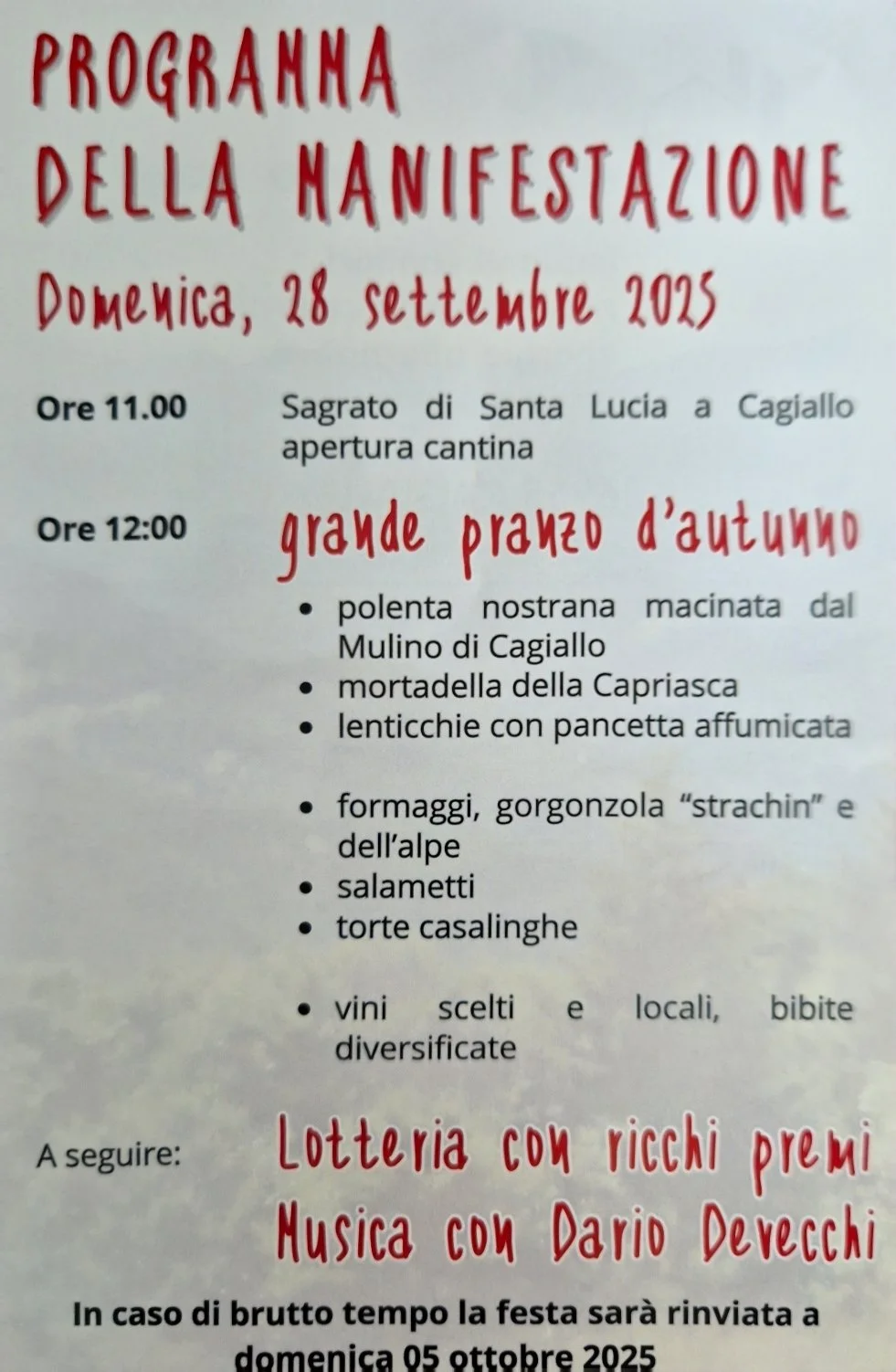 Domenica 28 settembre, la Corporazione Terrieri di Cagiallo-Sarone presenta Sapori d’autunno.